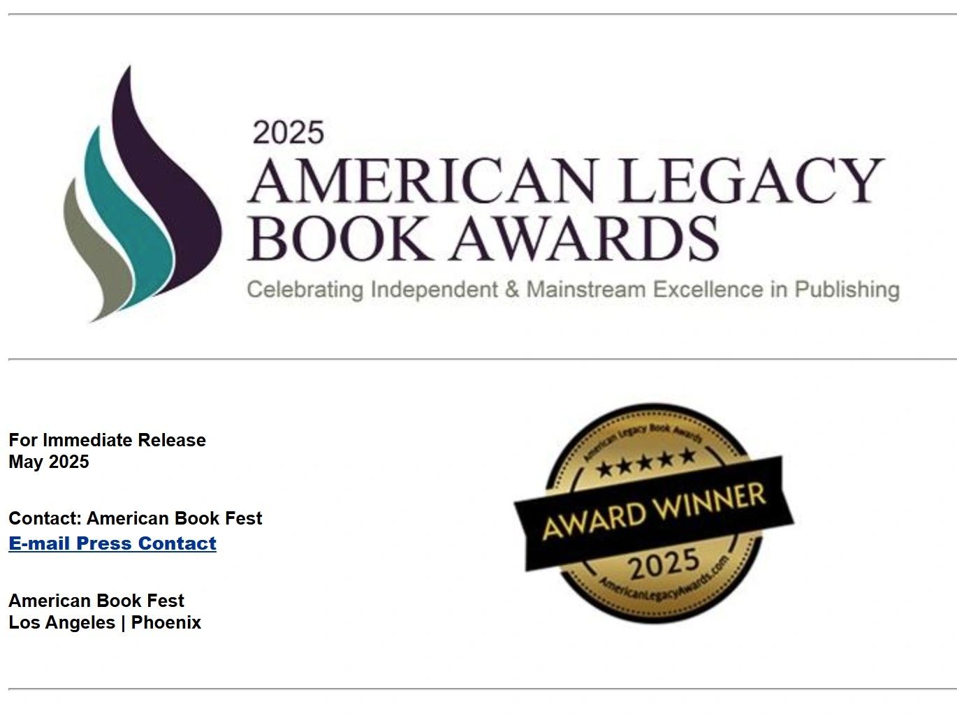Each year the Florida Authors and Publishers Association (FAPA) sponsors the FAPA President’s Book Awards, which recognizes book publishing ex